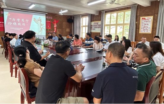 教工党支部在电教楼201会议室开展8月“一月一课一片一实践”主题党日活动。活动围绕“力学笃行 行稳致远”主题开展国防观念和责任担当教育学习,教工党支部书记何斌主持,党总支书记李爱国及支部全体党员参加。