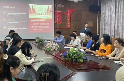 教工党支部在电教楼201会议室开展5月“一月一课一片一实践”主题党日活动。活动围绕“学纪 知纪 明纪 守纪”主题进行学习研讨,本次活动由教工党支部组织委员牛子璇主持,支部全体党员参加。