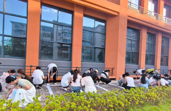 活动现场,在校保卫部提供的的专业绘制工具的助力下,学生党员们将美纹纸胶带、滚刷、标线漆等工具与纺织学科知识相结合,对停车位进行精准测绘。"我们运用纺织工程中的经纬纱线排列原理,确保每条标识线间隔均匀、角度精准。"学生党员龙俊杰道。党员们分工明确,有的手持美纹纸胶带定位,有的弯腰涂刷标线。尽管烈日当空,但大家干劲十足,经过2小时连续作业,原本闲置的停车区域被规整出清晰网格。