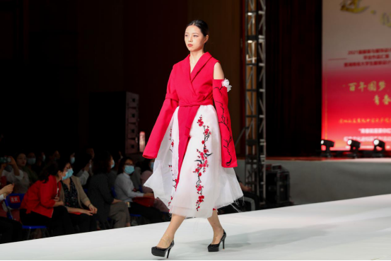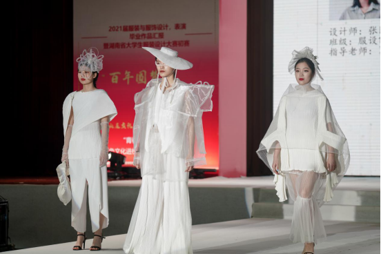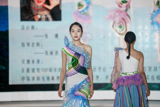 院长周衡书介绍,本次毕业作品汇报以“莲心”为主题,取莲城之名,寓师生连心,共同创造美好未来。同学们结合建党100周年,融入大量红色文化、民族文化元素,在作品主题、元素运用、科技创新等均较以往有所突破,或运用独特的面料处理技艺和款式造型手法,彰显前沿的设计理念,或结合时尚潮流与市场需求,展现为生活而设计的强烈意识。本次毕业作品展演,既检验了学生四年来的学习和实践动手能力,也体现了学院专业建设、人才培养方面的成果。