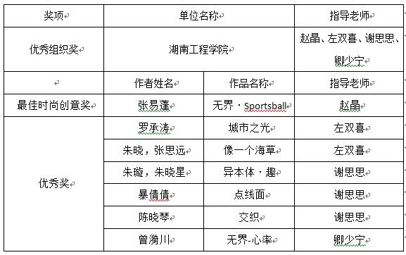 参赛作品从3000余份海内外作品中脱颖而出,荣获最佳时尚创意大奖1项,优秀奖6项,并且荣获大赛优秀组织奖,指导老师从“创无恒”、“归相容”、“异本体”三个主题引导学生对创意面料设计构思,结合国际市场流行趋势,进行面料创意设计。