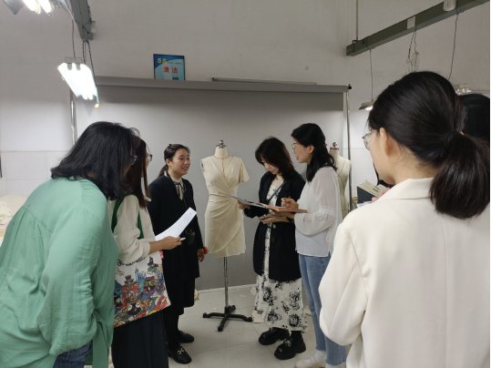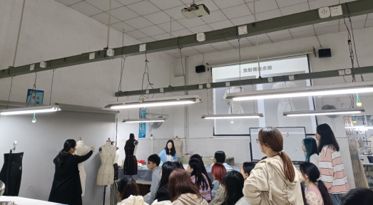 服装设计与工程教研室于2023年10月30日第三节课在服装实习工厂组织开展了公开示范教学活动,主讲教师为李婧老师,讲授课程为《立体裁剪2》中“放射褶连衣裙的立体裁剪”。