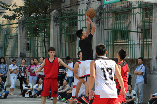 比赛分红白两队进行,两队队员满怀激情,准备充分。比赛伊始,队员们一个个投入迅速,默契配合,全力发起进攻,在球场上你追我赶。运球动作灵巧多变,投球动作潇洒自如。双方争锋异常激烈,随着裁判的一声哨响,红白两队以25:17的比分结束了上半场比赛。在下半场中,队员们情绪高涨,观众更是激情满怀。两队最终以55:41红队获胜而告终。