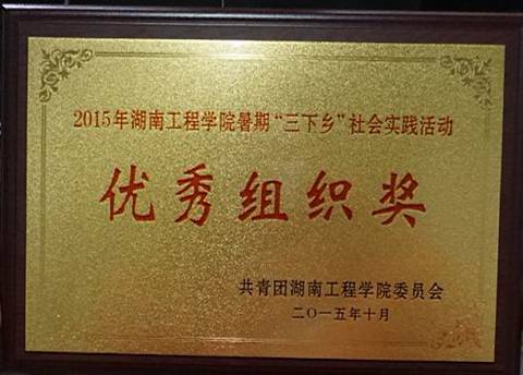 以喜人的成绩荣获2015年暑期“三下乡”社会实践活动“优秀组织奖”,指导老师章平获“优秀指导者”称号,学生何集泽、索君、吴延湖、陈巍、薛璟宝获“优秀个人”称号。