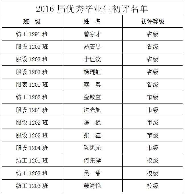 麻豆官网 2016届优秀毕业生初评名单公示
