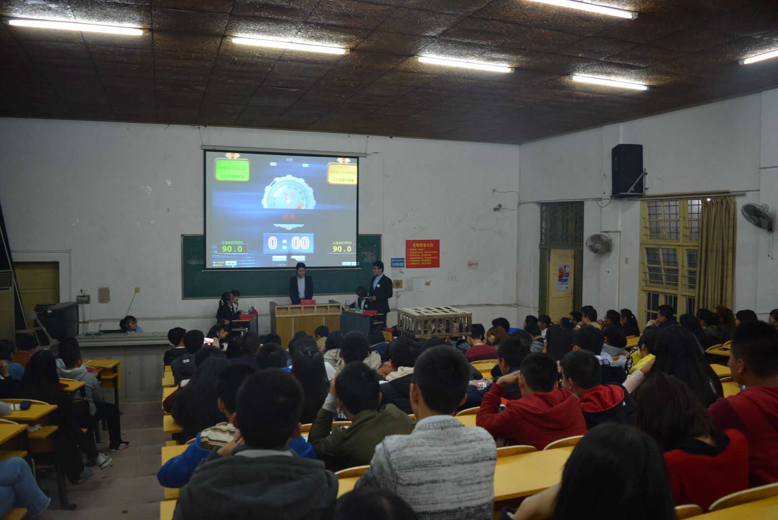 的正方辩手与化学化工学院的反方辩手围绕辩题“人生更愿如初见,还是人生更愿久相逢”展开激烈辩论。辩论吸引了不少两个院的学生。