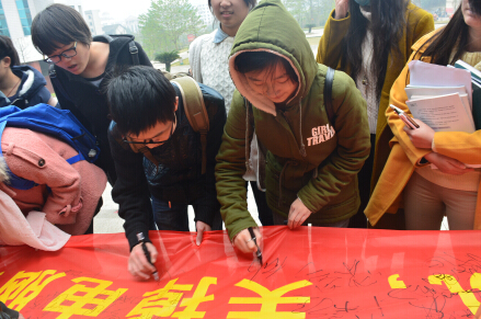 学风建设,唐星星围绕“放下手机,关掉电脑,走进教室,走上操场,实现零挂科”这一主题,号召同学们做好考前复习工作,积极备考,切忌投机取巧,存在侥幸心理。紧接着黄自力发表讲话,她希望同学们能够积极响应学办老师的号召,在思想上和行动上都高度重视期末考试,并树立诚信参考的观念。最后,同学们在团总支学生会的组织下有序在主题横幅上签名,以表明自己诚信参考的决心。