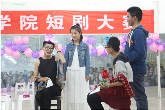 随着两位主持人的介绍,比赛在一段激情洋溢的开场舞中拉开序幕。第一个话剧,就让观众目不转睛,随着他们默契的配合、妙语连珠、包袱不断,引得观众哄堂大笑。最吸引眼球的非“甄嬛传”莫属,每个“妃子”都各聚特色,逗的台下哈哈大笑,随着反串华妃的登场,形像神似、动作到位,将赛场气氛推向高潮。各班编排的短剧生动形象,贴近生活,各短剧的演员尽情地展现出自己的青春魅力。随着一个个精彩的话剧出场,台下呼声、掌声不断,比赛逐渐接近尾声。