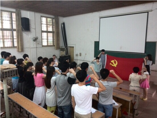 党支部于5月30日中午12点在电教105举办了入党宣誓大会,出席宣誓仪式的有院党总支副书记江灏、学办主任唐星星,学办老师罗荃以及学生支部支委、46位预备党员。大会由唐星星老师主持。