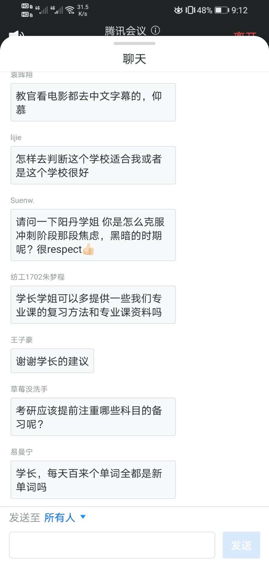 分享结束后,同学们现场向学长学姐提出了有关考研过程中的各种疑问,学长学姐们都一一做出了耐心解答。最后由主持人刘蒙丹进行总结和补充结束了此次的交流会。