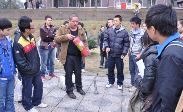 首先,朱亮用鲜活的大、小案例让学生们切身感受到了火灾之无情,防火之必须。围绕校园内火灾发生的各种情况,朱亮重点讲述了如何安全逃生以及火灾初期扑救方法。随后,朱亮现场操作如何使用干冰灭火器、消防水泵。