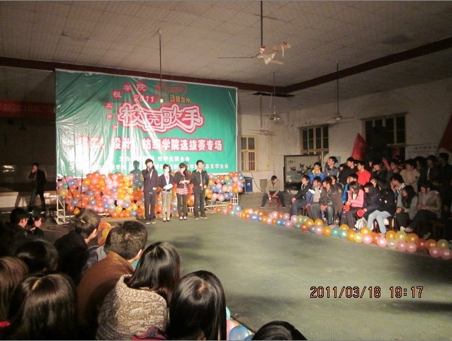 3月17日晚7点,由校团委主办,纺织学院、建工学院、设计学院承办的校园歌手大赛决赛在北院二食堂二楼举行。到场的评委是自各学院历届校园歌手大赛的优秀选手,嘉宾有来自建工学院党总支副书记单山鸣书记、纺织学院学生工作办老师尹老师以及北院各学院团总支学生会主席团成员。