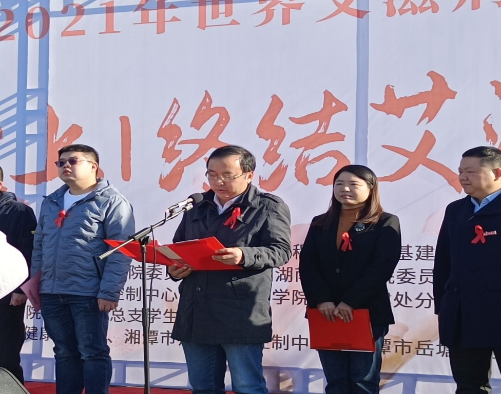 副校长陈赤平,岳塘区疾病预防控制中心工会主席陈瑶女士等领导出席了本次活动。在活动正式开始前,艺术团和各学院志愿者为我们带来了合唱《拥抱你》和手语操《和你一样》。