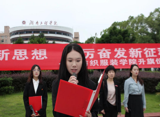 升旗仪式上,服设2103帅泽璇作为学生代表发言,她呼吁,作为新时代的大学生,我们要有自信、有决心、有勇气,学会适应新的变化,勇于追求自己的梦想。但与此同时我们还要学会合作,分享和包容,一起成长,共同进步。要学会尊重他人,珍视每一个人,帮助每一个人。以强国复兴为己任,尽自己所能报效祖国。