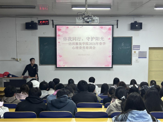 团学会心理部干部干事、大一至大四全体心理委员在电教楼101召开以“你我同行,守护阳光”为主题的2024年春季心理委员培训会。会议由学院心理专干龚旭昱老师主讲。