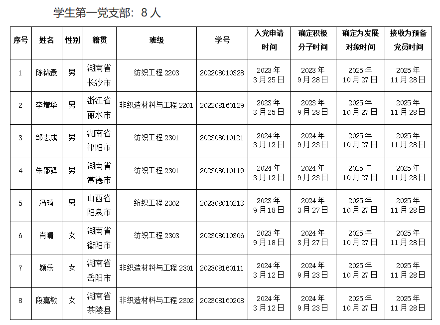 委员会发展党员工作实施细则》的规定,支部委员会对拟接收预备党员进行了严格审查,经集体讨论、学院党委审查、校党委预审和党支部大会讨论决议,接收陈锦豪、苏特杭等17名同志为预备党员。现将有关情况公示如下: